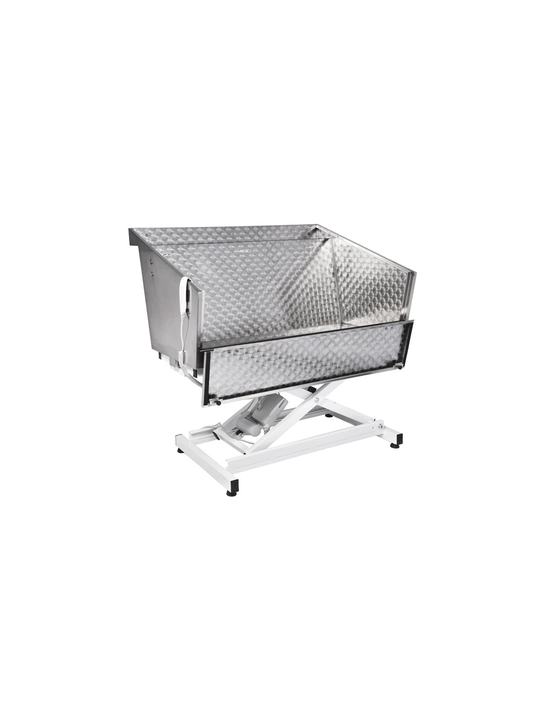Dimenzije kadi so 130 × 50 × 68 cm, kar omogoča delo z majhnimi, srednje velikimi in številnimi večjimi pasmami.