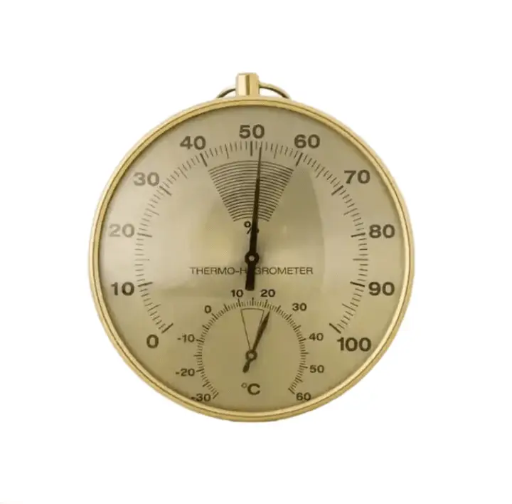 Zlat termometer-vlagomer – eleganten merilec temperature in vlažnosti za dom, kuhinjo in shrambo